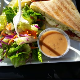 I came here during lunch time and was so pleased to meet Nicole. She was super helpful with helping me make my decisions. She had recommendations and when I told her that I do enjoy cinnamon in my coffee she suggested the Dirty Horchata and I'm glad she did because I genuinely enjoyed it. My intent was to come here just for coffee but when I saw that their menu offers panini, I had to try it. So I got the chicken with peppers, so flavorful!!!! Just the right combination of chicken, cheese and peppers on a delicious toasted bread. Nicole was kind enough to share that they do have a $9.99 lunch special combo that comes with the sandwich, salad or chips and iced tea. My eyes got really big when I saw their pastry display. They offer all kinds of pastries, including cake pops. So I walked out with a pecan bar and a cake pop for my son. The cafe is located in a shopping center, so plenty of parking. It's located in the corner with seating indoors and outdoors. Love that their coffee is organic and that there's a Yelp check in surprise! Thank you for making my visit pleasant and thank you for being so patient with me Nicole!